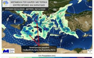 Την ίδια στιγμή, το meteo.gr, του Εθνικού Αστεροσκοπείου Αθηνών, προαναγγέλλει ότι «τελειώνει η περίοδος της ανομβρίας» καθώς αναμένονται πολλές βροχές τις επόμενες ημέρες. Σύμφωνα με τα προγνωστικά στοιχεία του Εθνικού Αστεροσκοπείου Αθηνών / Meteo.gr, τελειώνει η μακρά περίοδος ανομβρίας για τις περισσότερες περιοχές της χώρας, καθώς το επόμενο διάστημα διαδοχικά βαρομετρικά χαμηλά αναμένεται να δώσουν αξιόλογες βροχοπτώσεις, αρχής γενομένης το διήμερο Κυριακή 29/11 – Δευτέρα 30/11.