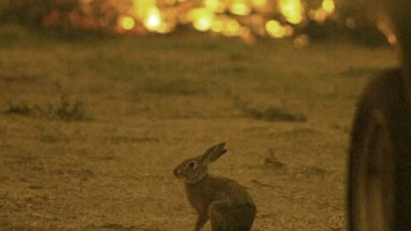 Μια συγκλονιστική φωτογραφία με έναν λαγό ο οποίος στέκεται ακίνητος μπροστά σε μια μεγάλη πυρκαγιά, δίνει στη δημοσιότητα η ομάδα «Save a Greek Stray».