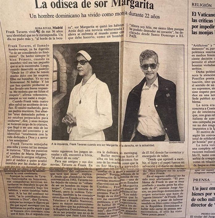 Ο Φρανκ Ταβάρες, γεννημένος στη Δομινικανή Δημοκρατία, έζησε για 22 χρόνια ως μοναχή με το όνομα «Αδελφή Μαργαρίτα» σε δύο διαφορετικά μοναστήρια, χωρίς κανείς να υποψιαστεί την πραγματική του ταυτότητα.