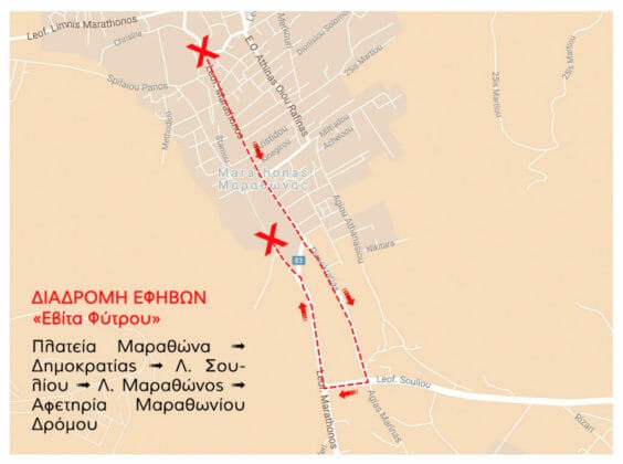 Σημείο εκκίννησης έχει οριστεί η πλατεία Μαραθώνα και τερματισμού η Αφετηρία του Μαραθωνίου Δρόμου.