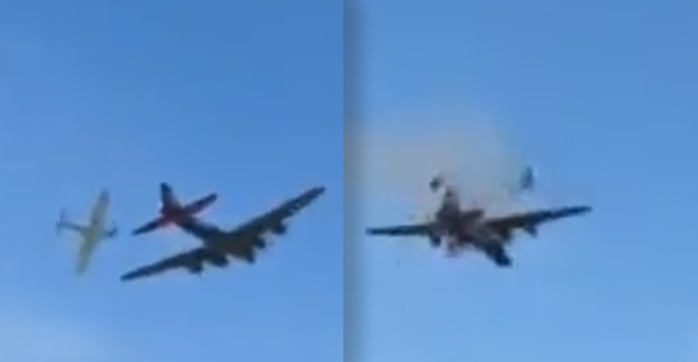 Όπως φαίνεται στο βίντεο ένα μεγάλο B-17 (βομβαρδιστικό από την εποχή του Β’ Παγκοσμίου Πολέμου) κινείται στον αέρα όταν ένα μικρότερο μονοθέσιο αεροσκάφος Bell P-63 Kingcobra πέφτει πάνω του με αποτέλεσμα να συγκρουστούν.