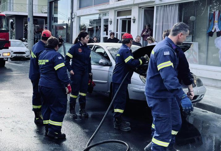 Συγκεκριμένα, όχημα το οποίο ήταν παρκαρισμένο στην οδό Σαράφη, τυλίχτηκε ξαφνικά στις φλόγες, προφανώς από βραχυκύκλωμα.
