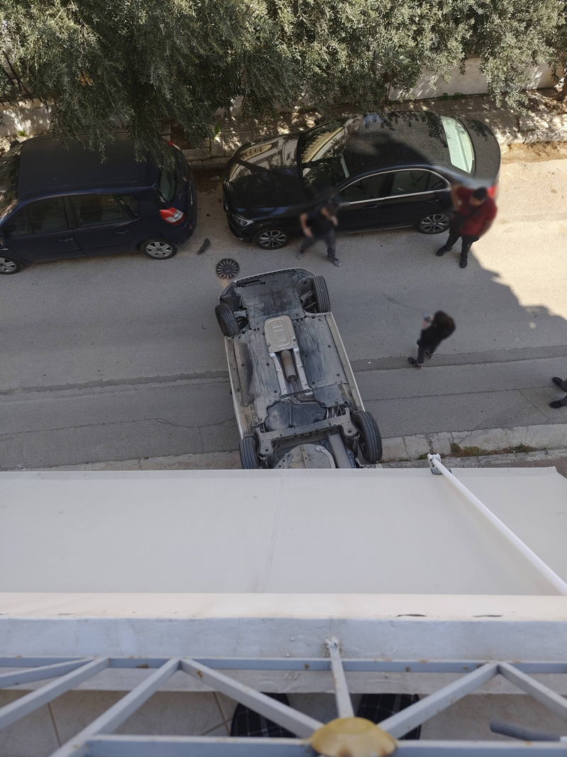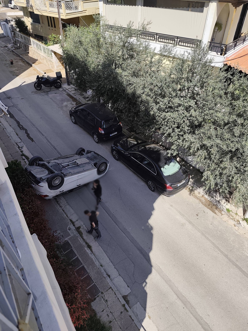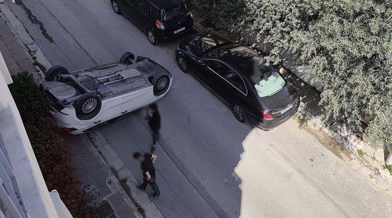Όπως γράφει το irafina.gr, ένα αυτοκίνητο εξετράπη της πορείας του τη Δευτέρα στην οδό Σαλαμίνος στην Παλλήνη, πιθανότατα βρήκε στο πεζοδρόμιο και γύρισε τούμπα, μένοντας τελικά ανάποδα στον δρόμο.