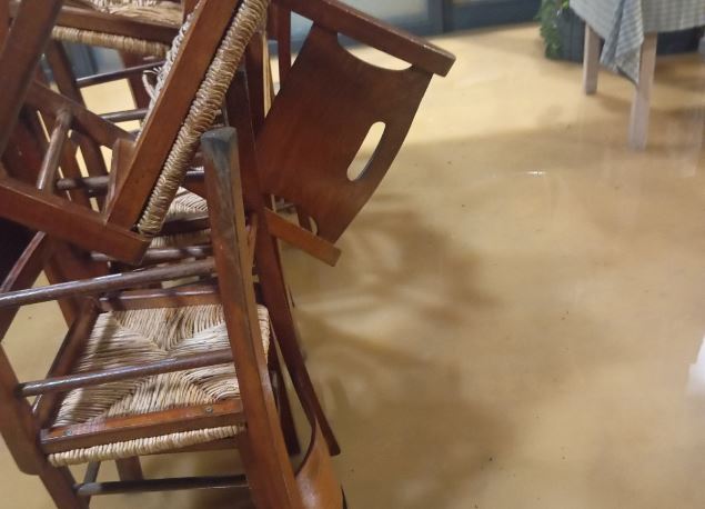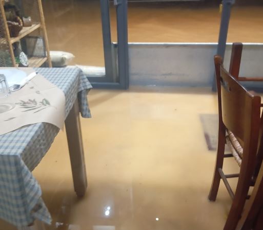 Όπως λένε η Ευαγγελία και ο Δημήτρης στη MP «λίγο μετά τις 23.15 που δυνάμωσε η βροχή αρχίσαμε να έχουμε προβλήματα, αλλά ακριβώς επειδή είχαμε πλημμυρίσει τρεις φορές στο παρελθόν, τοποθετήσαμε λαμαρίνες και σακιά με άμμο. Τα υπερκάλυψε και αυτά το νερό και μπήκαν στο μαγαζί λάσπες που έφτασαν τους 50 πόντους».
