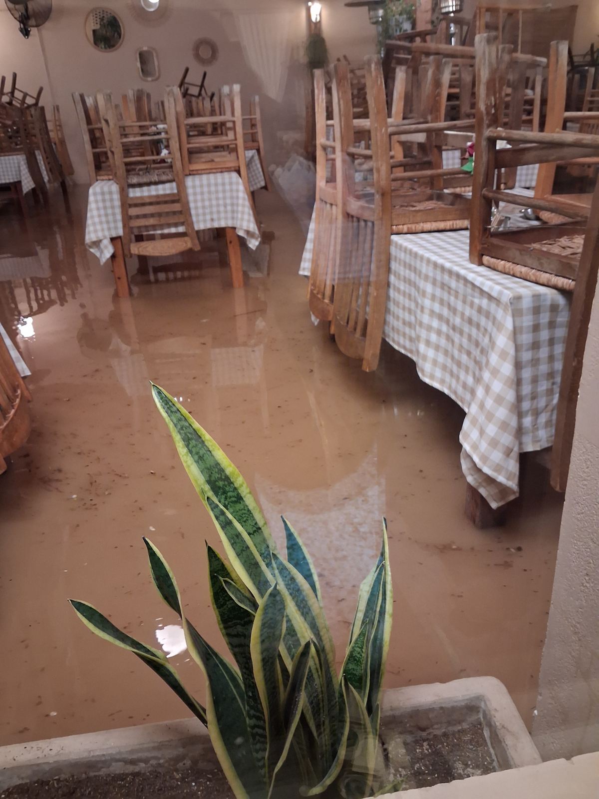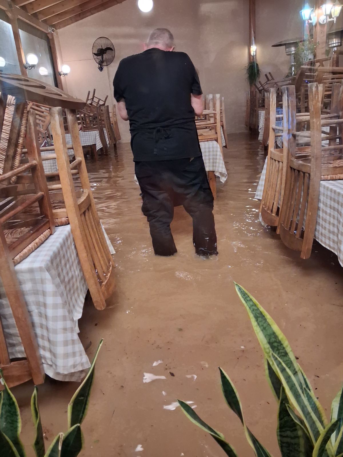 «Από το 2004 που έγιναν τα έργα στη Μαραθώνος και βρεθήκαμε ξαφνικά πιο χαμηλά σε ύψος, αντιμετωπίζουμε συνεχώς το ίδιο πρόβλημα. Χθες το νερό έφτασε τους 70 πόντους και αν δεν είχαμε τοποθετήσει λαμαρίνες για προστασία, θα είχαμε ανυπολόγιστες καταστροφές. Ενδεικτικά σας λέω ότι δεν φαινόταν η σκάλα», λέει στη MP η ιδιοκτήτρια Γιάννα Πρεβενά και εκφράζει την αγωνία «τι θα γίνει σε περίπτωση που έχουμε τέτοια βροχή πιο νωρίς, με πελάτες στο μαγαζί. Χθες πλημμυρίσαμε μέσα σε λίγα λεπτά. Οι τελευταίοι ανέβηκαν πάνω σε καρέκλες για να φύγουν».