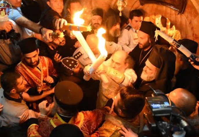 Κάθε χρόνο, το μεσημέρι του Μεγάλου Σαββάτου στον Πανάγιο Τάφο του Χριστού στα Ιεροσόλυμα τελείται η λειτουργία της Αναστάσεως, την οποία παρακολουθούν χριστιανοί από κάθε μεριά της γης, αλλά και αλλόθρησκοι που θέλουν να ζήσουν την εμπειρία. Περί τις 12 το μεσημέρι, πραγματοποιείται η Ιερή Λιτανεία, ενώ εκπρόσωποι όλων των Εκκλησιών έχουν την ευκαιρία να ασπαστούν το χέρι του ελληνορθόδοξου Πατριάρχη.
