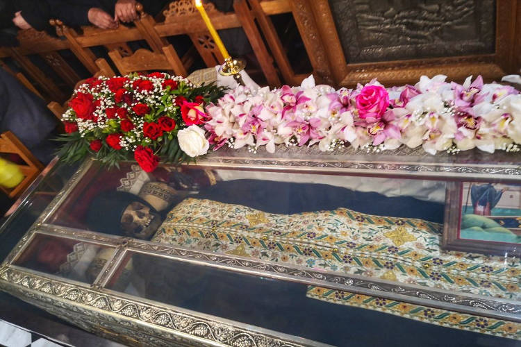 Πλήθος κόσμου βρέθηκε χθες στην Ιερά Μονή του Άγιου Εφραίμ για να προσκυνήσει τα λείψανά του και να παρακολουθήσει τη Θεία Λειτουργία.