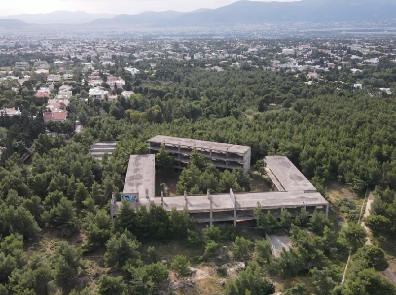 Κοιτώντας κανείς τις εικόνες από ψηλά μέσα από το βίντεο του n.p. production θα δει ότι το ημιτελές σχολείο βρίσκεται μέσα στο δάσος πλήρως απομονωμένο από τον αστικό ιστό.