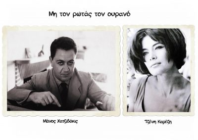 Το 1959 προβλήθηκε στις κινηματογραφικές αίθουσες η ταινία «Το Νησί των Γενναίων» του Ντίμη Δαδήρα. Εκεί ακούστηκε για πρώτη φορά, το τραγούδι του Μάνου Χατζιδάκι «Μην Τον Ρωτάς Τον Ουρανό», με τη φωνή της Τζένης Καρέζη.