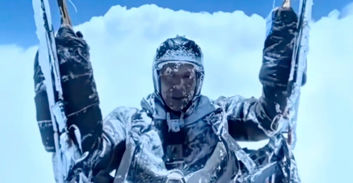 Λόγω των ανέμων ο Κινέζος αλεξιπτωτιστής βρέθηκε πάνω από τα σύννεφα με τον ίδιο να προσπαθεί να χειριστεί το αλεξίπτωτο πλαγιάς ενώ ο ίδιος έχει καλυφθεί από πάγο.