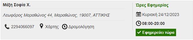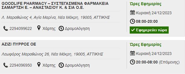 Αυτά είναι τα φαρμακεία που εφημερεύουν σήμερα Κυριακή σε Μαραθώνα, Νέα Μάκρη, Ραφήνα και Πικέρμι σύμφωνα με τον Φαρμακευτικό Σύλλογο Αθηνών.