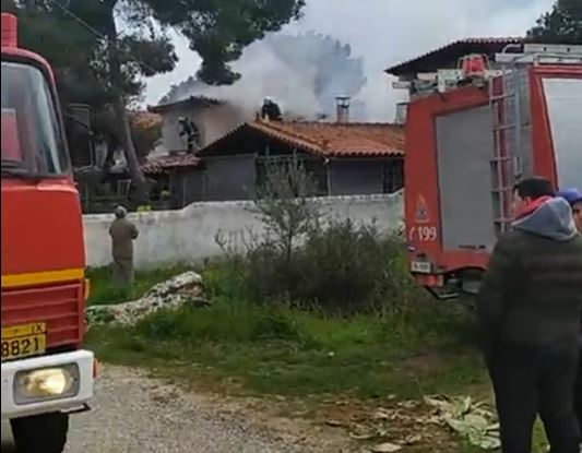 Ένα ζευγάρι ηλικιωμένων απεγκλωβίστηκε από άνδρες της Πυροσβεστικής, από τη μονοκατοικία που τυλίχθηκε στις φλόγες στη Ραφήνα.