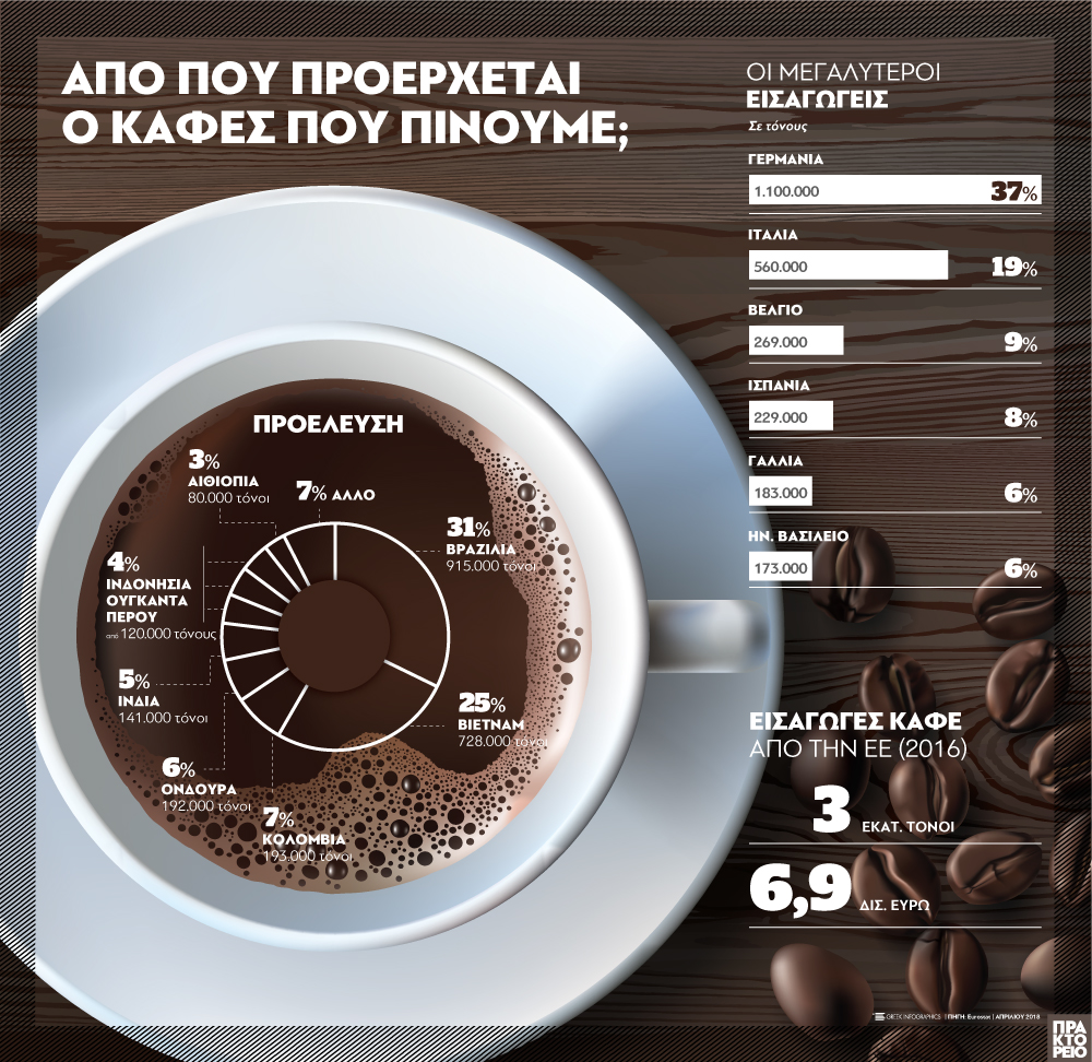Το 2016, η Ευρωπαϊκή Ένωση (ΕΕ) εισήγαγε σχεδόν 3 εκατομμύρια τόνους καφέ από το εξωτερικό, 10% περισσότερο απ’ ό,τι πριν από 10 χρόνια. Οι εισαγωγές ανήλθαν σε 6,9 δισ. ευρώ.