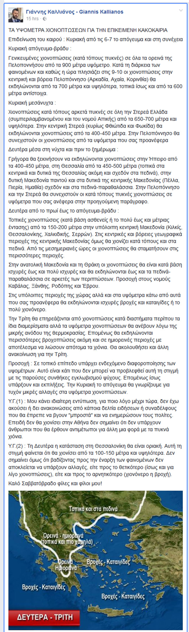 Η ανάρτηση του μετεωρολόγου Γιάννη Καλλιάνου για το νέο κύμα κακοκαιρίας: