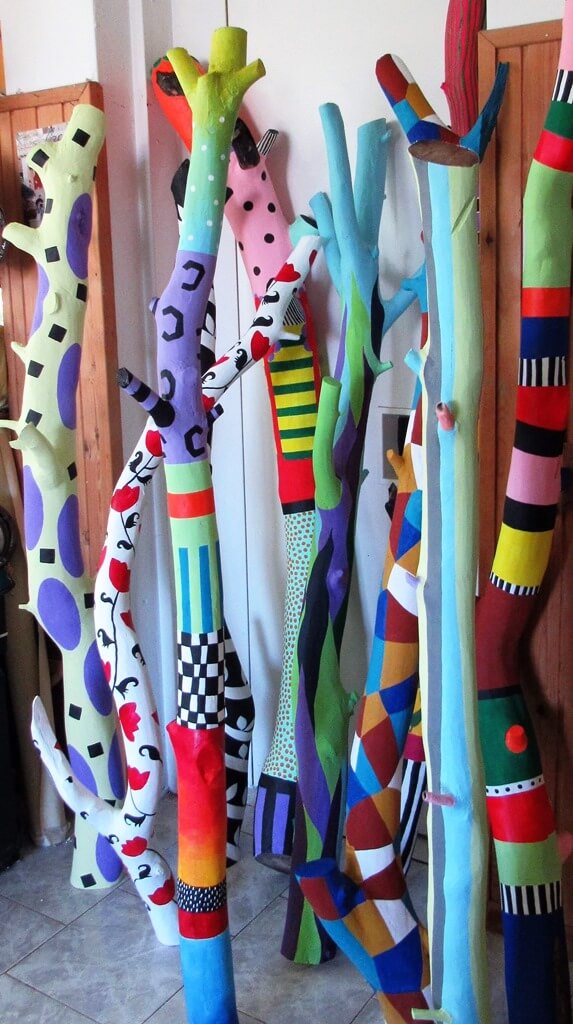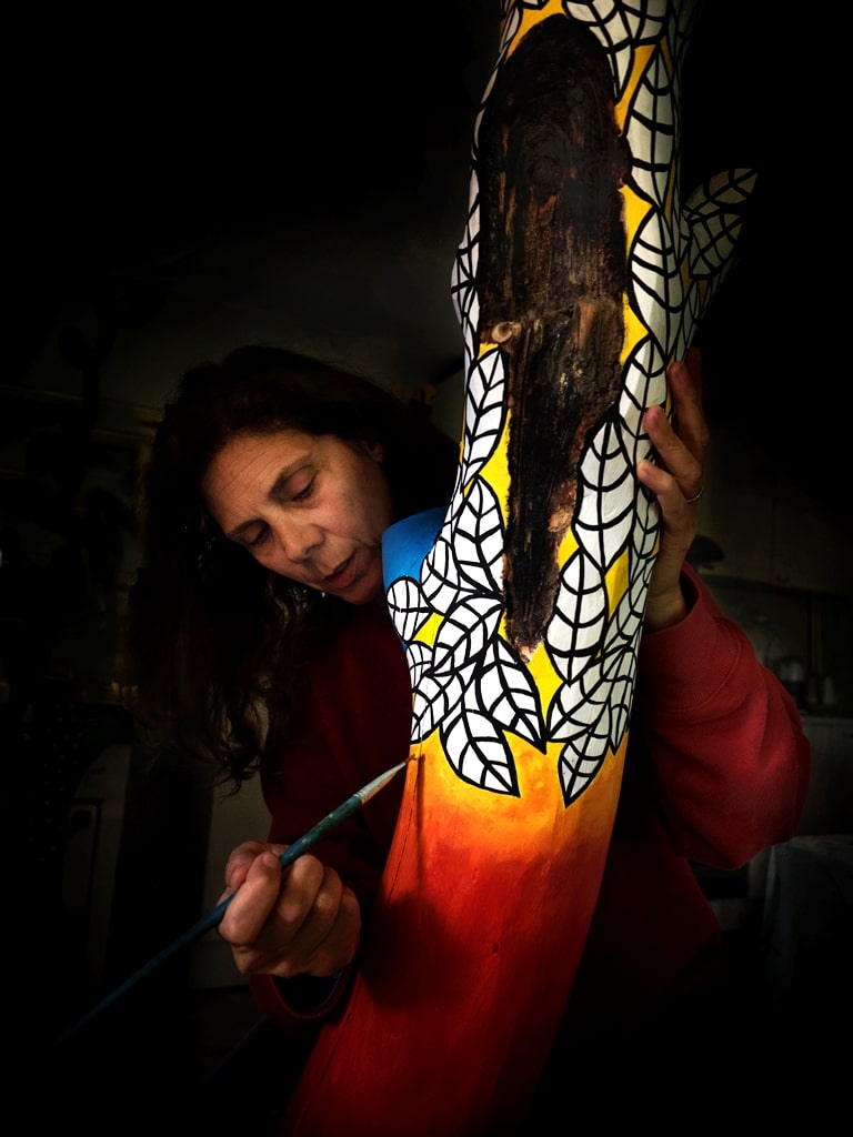 Το Art4Mati δε σταματά, όμως, στην αφήγηση των παραμυθιών. Ανάλογη ανάγκη να βρει διέξοδο από τη μαυρίλα και τη μιζέρια είχε και η εικαστικός Μαριάννα Πούργαλη. Η δική της ιδέα ήταν να μαζέψει 23 καμένα δέντρα, να τα επεξεργαστεί και να τους ξαναδώσει ζωή μέσα από το χρώμα, μεταμορφώνοντάς τα σε ένα πολύχρωμο δάσος.