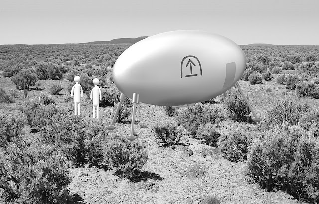 Το αντικείμενο είχε σχήμα αυγού σε μέγεθος όμως αυτοκινήτου. Όταν πλησίασα είδε ότι πάνω του είχε κάποια σημάδια. Ήταν ένα βέλος που έδειχνε προς το πάνω με μια γραμμή στη βάση του. Το κάλυπτε μια καμπύλη. Πλησίασα και είδα ότι το αντικείμενο στηριζόταν πάνω σε τέσσερις βραχίονες που ακουμπούσαν στο έδαφος.