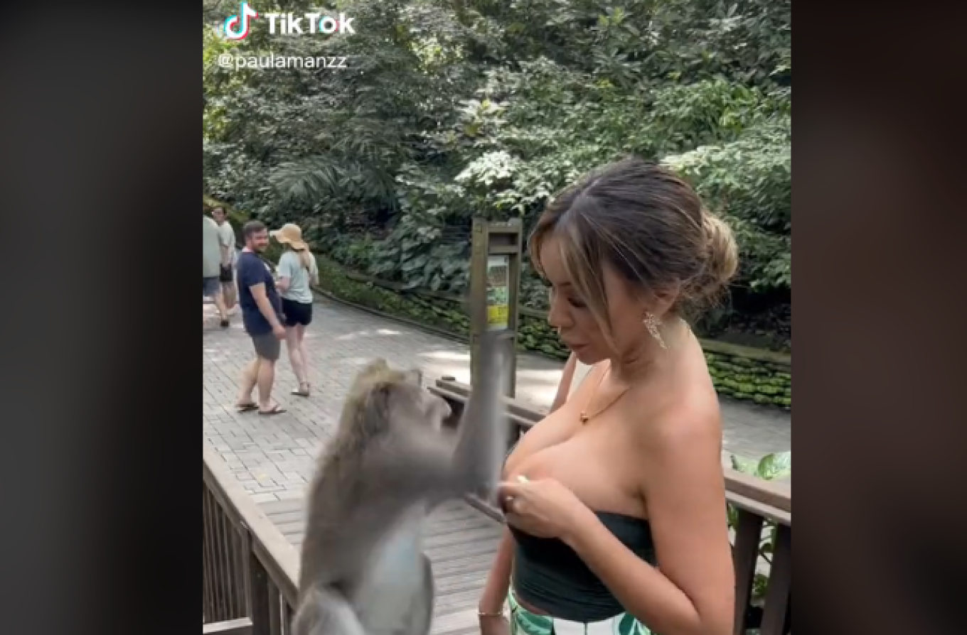 Viral έχει γίνει το βίντεο στο TikTok στο οποίο φαίνεται μια μαϊμού με… άγριες διαθέσεις να προσπαθεί να κατεβάσει το στράπλες μπλουζάκι της πρώην «Μις Περού», Πάουλα Μανζάλα, στο Μπαλί της Ινδονησίας.