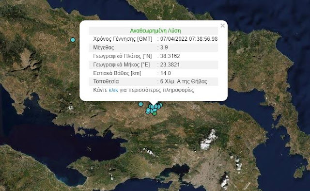 Το επίκεντρο εντοπίστηκε 6 χλμ ανατολικά της Θήβας, ενώ το εστιακό βάθος υπολογίστηκε στα 14 χλμ.