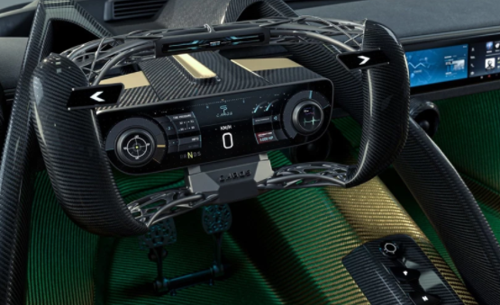 Στο εσωτερικό ξεχωρίζουν το μοναδικής αισθητικής τιμόνι που θυμίζει ταινία επιστημονικής φαντασίας. Εσωτερικά μπορούν να φιλοξενηθούν δύο επιβάτες, ενώ αίσθηση προκαλούν τα καθίσματα τύπου μπάκετ που προσαρμόζονται ανάλογα με τις ανάγκες των οδηγών αναφέρει το δημοσίευμα του Αθηναϊκό-Μακεδονικό Πρακτορείο Ειδήσεων.