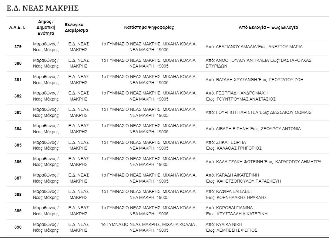 Στη δημοσιότητα έδωσε χθες ο δήμος Μαραθώνος τα εκλογικά τμήματα σε Μαραθώνα, Νέα Μάκρη, Γραμματικό και Βαρνάβα, όπου ψηφίζουν οι πολίτες.