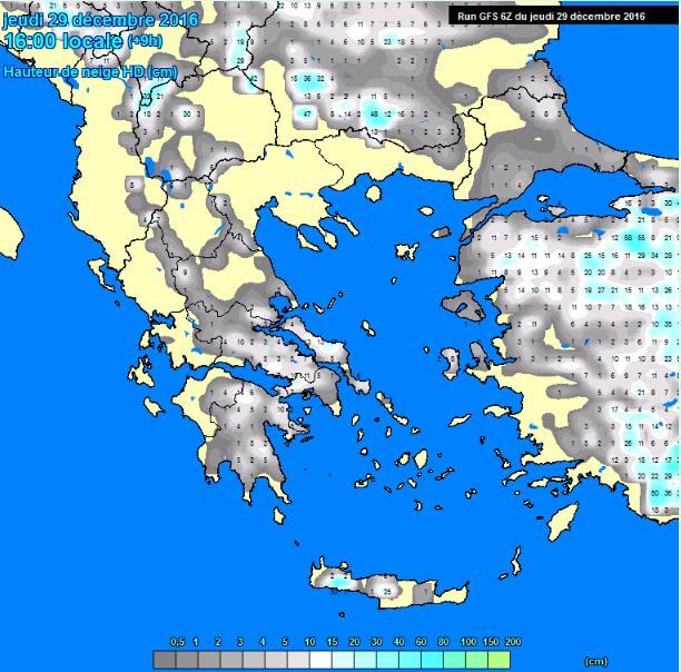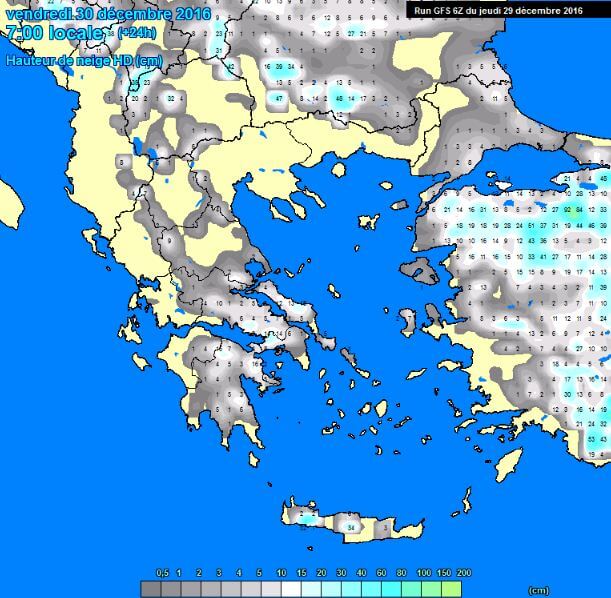 Ανάλογη είναι η εικόνα που δίνει και ο χάρτης με το ύψος του χιονιού για την ώρα αυτή. Ενδεικτικά, αναφέρουμε πως στα βόρεια προάστια το χιόνι θα φτάσει τους έξι πόντους, ενώ χιονόστρωση θα έχουμε στο μεγαλύτερο μέρος της Πελοποννήσου, της Ανατολικής Στερεάς, της Εύβοιας, ακόμα και στην Μαγνησία.