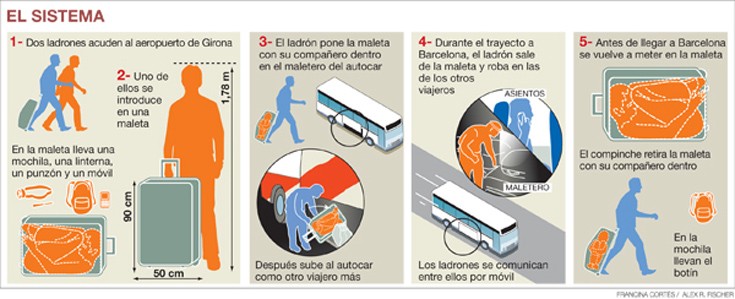 Μπήκε σε αποσκευές… για να κλέψει άλλες αποσκευές. Αυτή την ιδέα είχε ένας άνδρας με το συνεργό του στο αεροδρόμιο της Βαρκελώνης ο οποίος σκέφτηκε να μπει σε μια βαλίτσα ώστε όταν βγει στο χώρο αποθήκευσης να κλέψει από άλλες βαλίτσες τιμαλφή και να επιστρέψει στη δική του. Όπως ήταν αναμενόμενο το σχέδιο ναυάγησε…