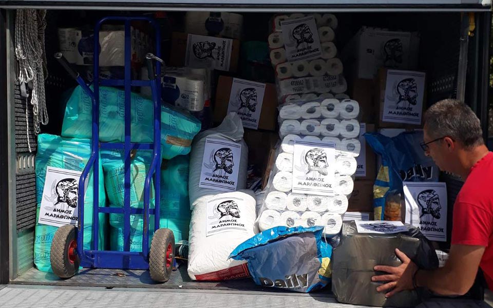 Παραδόθηκε την Τρίτη 24 Αυγούστου η ανθρωπιστική βοήθεια του Δήμου Μαραθώνος στους πυρόπληκτους της Βόρειας Εύβοιας.