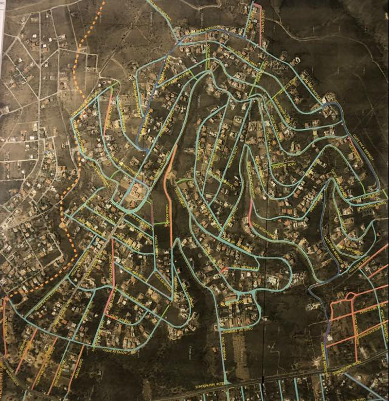 Στον χάρτη, φαίνονται, με πράσινο χρώμα, όλοι οι δρόμοι που θα ασφαλτοστρωθούν, με κόκκινο, οι χωματόδρομοι ή, οι αδιάνοικτοι δρόμοι που θα διανοιχτούν και θα επικαλυφθούν με άσφαλτο, με ανοιχτό πράσινο, οι δρόμοι στα πρανή με μεγάλη κλίση που θα γίνουν βαθμίδες και με βαθύ πράσινο όσοι δρόμοι θα επικαλυφθούν με αντιολισθητικό ασφαλτικό τάπητα. Γίνονται προσπάθειες να εκτελεστούν μερικά επιπλέον έργα για το καλό του Οικισμού.