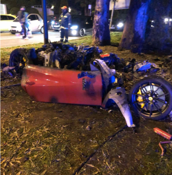 Στις εικόνες που έχουν αναρτηθεί στα social media φαίνεται το μοιραίο όχημα να έχει πάρει και φωτιά, ενώ σε άλλες φωτογραφίες φαίνεται η Ferrari η οποία έχει καταστραφεί ολοσχερώς.