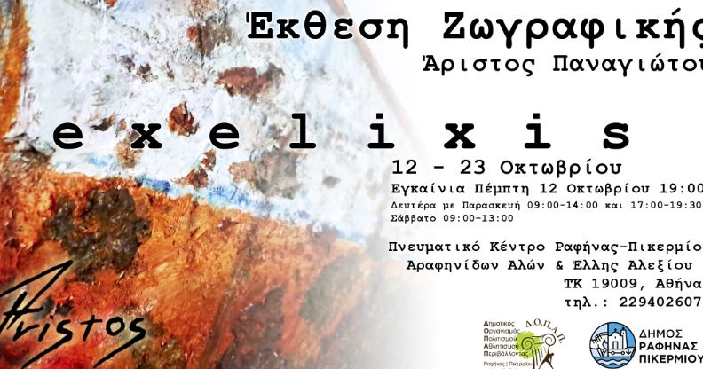 Εγκαίνια έκανε χθες στο Πνευματικό Κέντρο Ραφήνας – Πικερμίου η έκθεση ζωγραφικής του ζωγράφου Αρίστου Παναγιώτου.