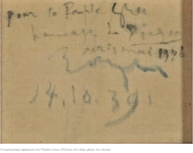 Το «Γυναικείο κεφάλι», διαστάσεων 56×40 εκ., που φιλοτέχνησε το 1939 ο Ισπανός ζωγράφος, αποτυπώνει τη μούσα του, φωτογράφο Ντόρα Μάαρ, με την οποία έζησε μια θυελλώδη σχέση για εννέα ολόκληρα χρόνια. Ενας παράφορος έρωτας που ξεκίνησε στα 54 του χρόνια ενώ εκείνη ήταν μόλις 29 ετών, ο οποίος, αν και έληξε άδοξα, με την ίδια να βυθίζεται για πάντα στα σκοτάδια του εαυτού της και τη μοναξιά, παρέμεινε αιώνια μούσα και η πιο δυνατή σχέση της ζωής του. Μια σχέση που αποτυπώθηκε σε λευκό καμβά με γαλάζιες και πράσινες αποχρώσεις. Ο ίδιος, έχοντας βιώσει τον Ισπανικό Εμφύλιο, που αποτέλεσε πηγή έμπνευσης για το διασημότερο δημιούργημα του, την «Γκερνίκα», αποφάσισε να δωρίσει το «Γυναικείο κεφάλι» στον ελληνικό λαό ως τιμητική προσφορά για τη στάση του απέναντι στον φασισμό και τον ναζισμό κατά τη διάρκεια του Β’ Παγκοσμίου Πολέμου. «Pour le peuple Grec. Hommage de Picasso» (Για τον ελληνικό λαό. Φόρος τιμής από τον Πικάσο), αναφέρει στο πίσω μέρος του καμβά η αφιέρωση που φέρει ημερομηνία 14/10/1939.