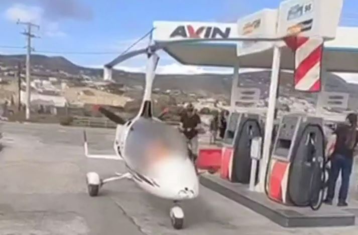 Ειδικότερα, ο πιλότος του μικρού ελικοπτέρου έφτασε στο βενζινάδικο οδηγώντας το σαν να ήταν κανονικό όχημα και γέμισε το ντεπόζιτό του για την επόμενη πτήση.