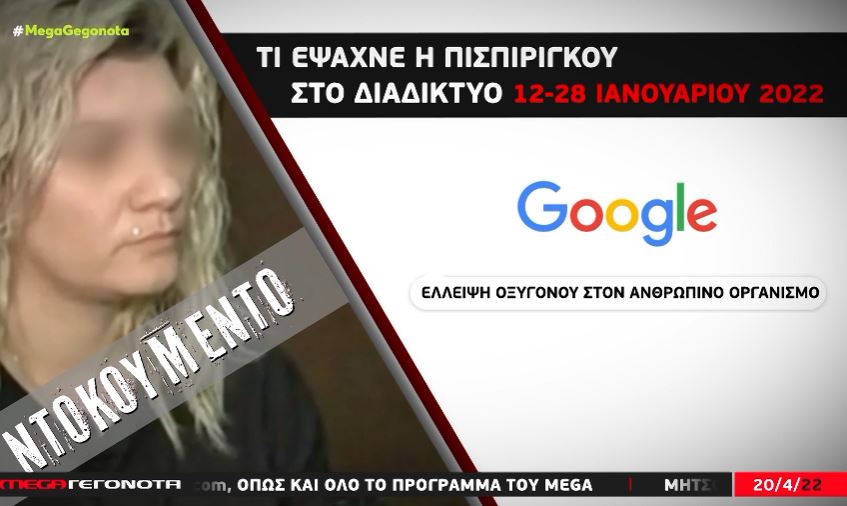 Λίγες ημέρες μετά την παραδοχή της Ρούλας Πισπιρίγκου ότι έχει ψάξει για θανατηφόρες ουσίες στο διαδίκτυο και μετά την αποκάλυψη πως έχει διαγράψει τις αναζητήσεις που έκανε στο διαδίκτυο, ο Βασίλης Λαμπρόπουλος και το Mega δημοσίευσαν ποιες είναι οι λέξεις εκείνες τις οποίες πληκτρολογούσε στο ίντερνετ, πριν τη νοσηλεία της Τζωρτζίνας.