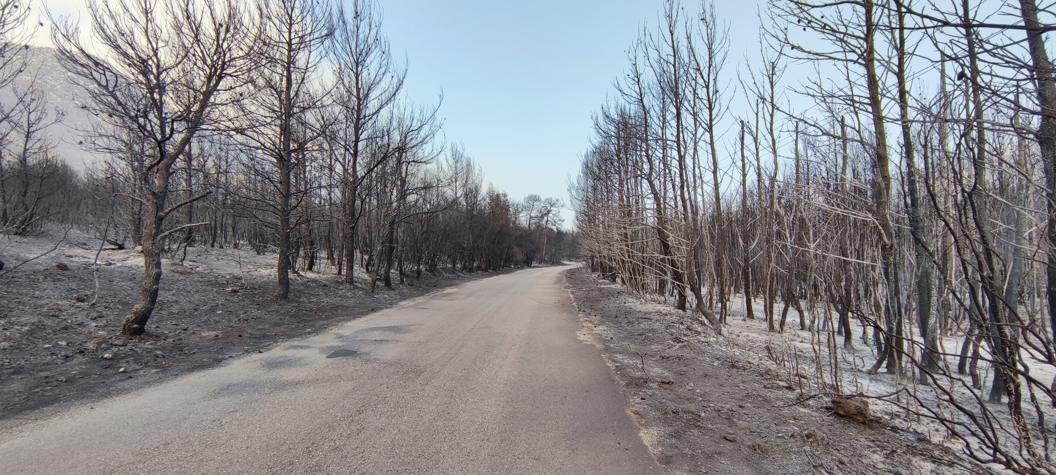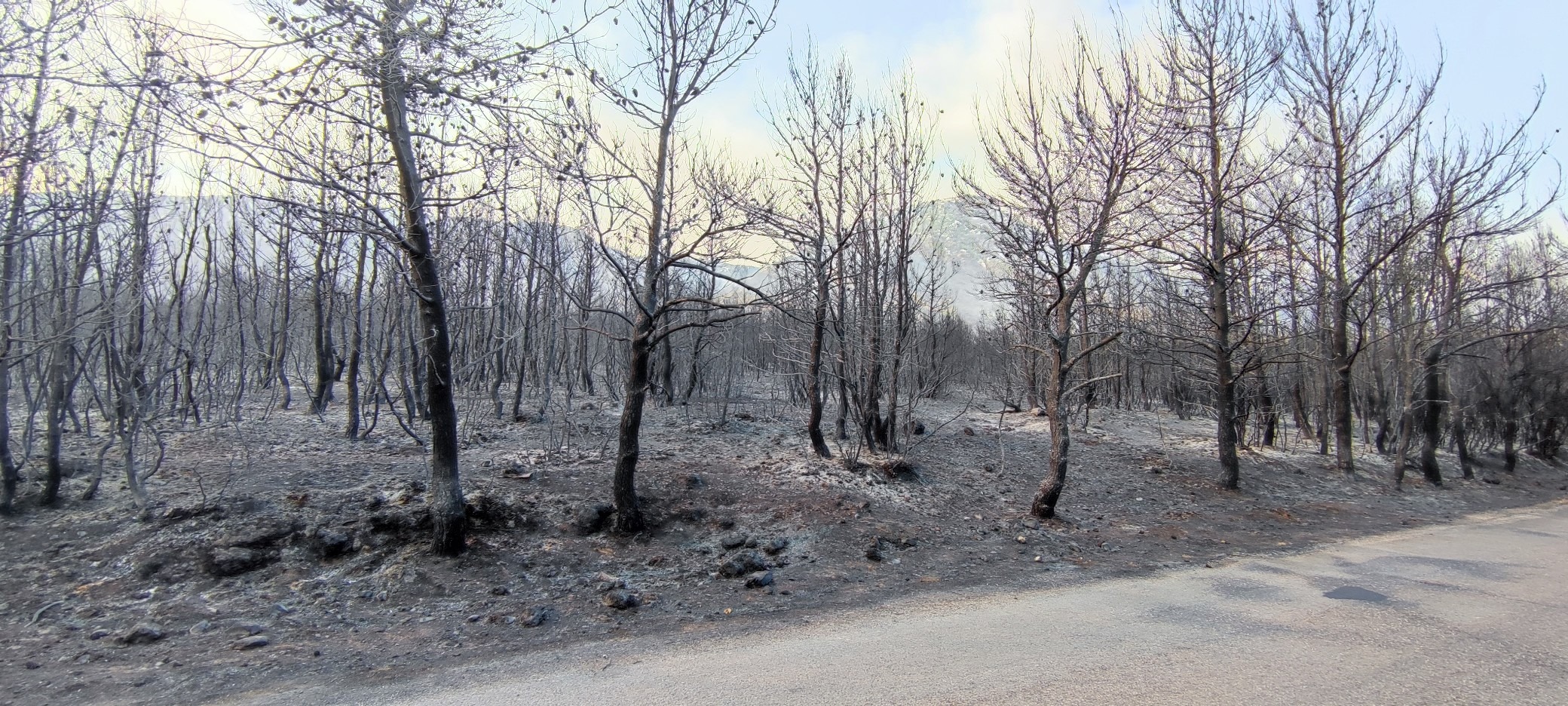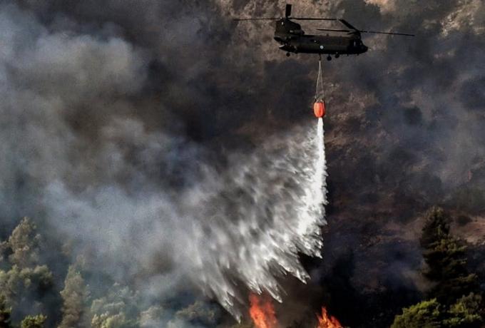 Ταυτόχρονα, υπάρχουν πολλές εστίες διάσπαρτες στα όρια του καμένου με το άκαυτο δάσος, καθώς η περίμετρος της πυρκαγιάς εκτείνεται σε πολλά χιλιόμετρα.