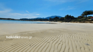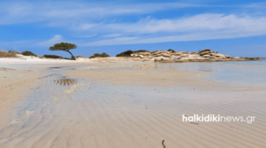 Η μοναδικής ομορφιάς παραλία στο Καρύδι της Σιθωνίας έχει «επεκταθεί».