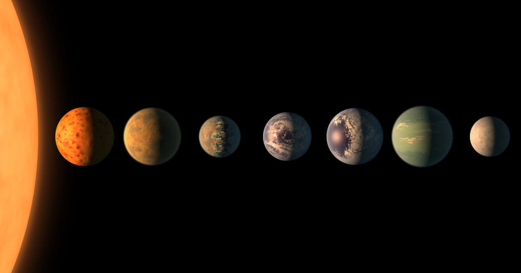 Όχι ένας, ούτε δύο, ούτε τρεις, αλλά επτά μικροί εξωπλανήτες, οι οποίοι έχουν μεγάλες ομοιότητες με τη Γη, ανακαλύφθηκαν γύρω από ένα σχετικά κοντινό και αχνό άστρο σε απόσταση περίπου 40 ετών φωτός, στον Αστερισμό του Υδροχόου.