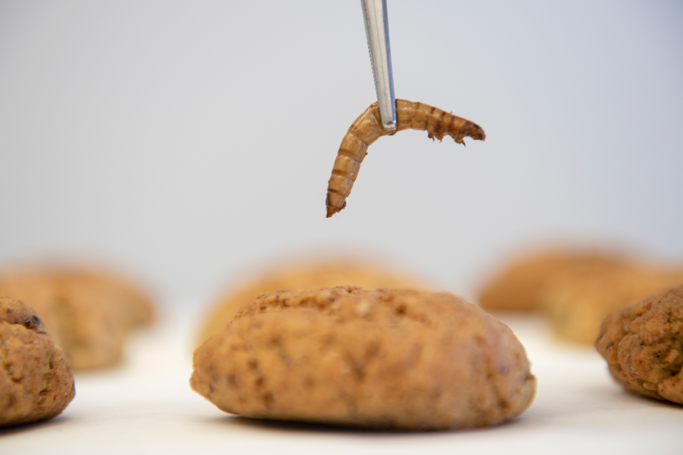Η Ματσακίδου, που έχει δοκιμάσει τα κουλουράκια, με διαβεβαιώνει πως ούτε στη γεύση εντοπίζει κάποια διαφορά. Στα τρόφιμα αυτά, η ομάδα αντικατέστησε μία από τις κλασικές πρώτες ύλες τους, όπως παραδείγματος χάρη τα αβγά στη μαγιονέζα, με σκόνη από αλευροσκώληκες και άλλα έντομα.