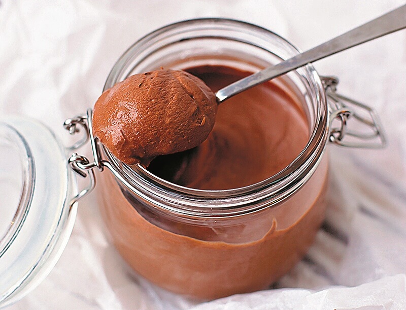 Ρίχνουμε το μισό μείγμα γάλατος-ζελατίνης στη σοκολάτα και ανακατεύουμε καλά. Σταδιακά προσθέτουμε το υπόλοιπο γάλα και ανακατεύουμε, μέχρι το μείγμα μας να γίνει λείο. Το αφήνουμε να κρυώσει (μέχρι να αντέχουμε το κάψιμο, όταν βουτάμε το δάχτυλό μας μέσα) και προσθέτουμε όλη τη χτυπημένη σαντιγί με τη μία. Χρησιμοποιώντας μία σπάτουλα ανακατεύουμε απαλά μέχρι να ενωθούν τα δύο μείγματα. Βάζουμε το μείγμα σε ποτηράκια και τα αφήνουμε στο ψυγείο μέχρι την επόμενη μέρα, για να κρυώσουν καλά.