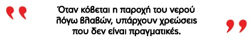 Και αυτό είναι καθαρά πρόβλημα του Δήμου και της Διοίκησης, γιατί αν δεν μπορούν να κάνουν τις μετρήσεις όσο συχνά ορίζει ο Κανονισμός Ύδρευσης, λόγω έλλειψης προσωπικού όπως ισχυρίζονται, οφείλουν εκείνοι να βρουν τις λύσεις. Και το λέω αυτό γιατί στην Υπηρεσία Καθαριότητας έχουν το υπερδιπλάσιο προσωπικό απ’ αυτό που είχαμε εμείς στη διάθεσή μας. Είτε πρέπει να προσλάβουν κι άλλους υπαλλήλους είτε να κάνουν σωστή διαχείριση και κατανομή του υπάρχοντος προσωπικού. Θα μπορούσαν, για παράδειγμα, τώρα που έγιναν προσλήψεις 5μηνων μέσω ΟΑΕΔ, κάποιοι από τους συμβασιούχους να αναλάβουν χρέη καταμετρητών.