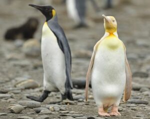 Σε ένα από τα νησάκια της South Georgia με την ομάδα που ξεναγούσε για να φωτογραφίσουν μια αποικία περισσότερων των 120.000 βασιλικών πιγκουίνων, καθώς ξεπακετάριζαν εξοπλισμό και τρόφιμα στη Salisbury Plain, πρόσεξε κάτι ασυνήθιστο: έναν πιγκουίνο που δεν ήταν μαύρος και άσπρος αλλά κίτρινος και άσπρος.