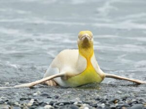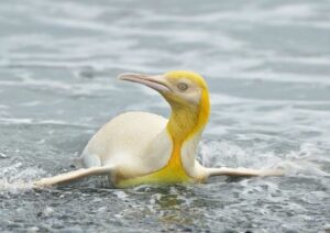 Ο κίτρινος πιγκουίνος είναι σπάνιο είδος και οφείλεται στον λευκισμό, μια διαδικασία στην οποία το ζώο χάνει μέρος του χρώματος του δέρματός του.