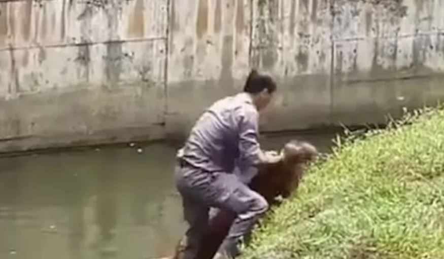 Ένας ηρωικός φροντιστής ζωολογικού κήπου στο Βιετνάμ, διέσωσε έναν ουρακουτάγκο από βέβαιο πνιγμό, με κινηματογραφικό τρόπο.