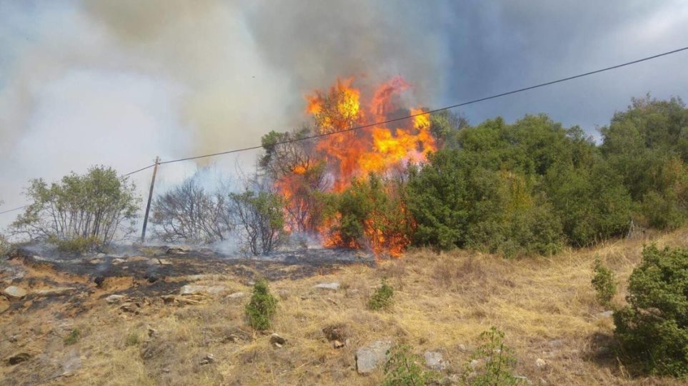 Η φωτιά καίει σε οικοπεδικό χώρο.