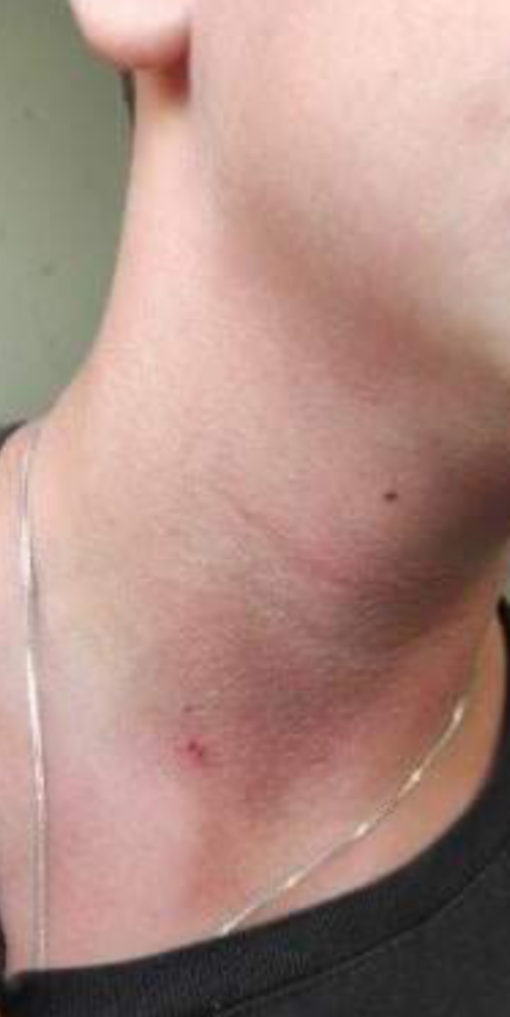 Εμφανή είναι τα σημάδια στον λαιμό του 13χρονου μαθητή από τη Νέα Μάκρη που σύμφωνα με την οικογένειά του, ξυλοκοπήθηκε από πατέρα συμμαθητή του το απόγευμα της περασμένης Κυριακής.