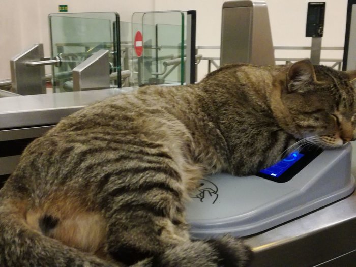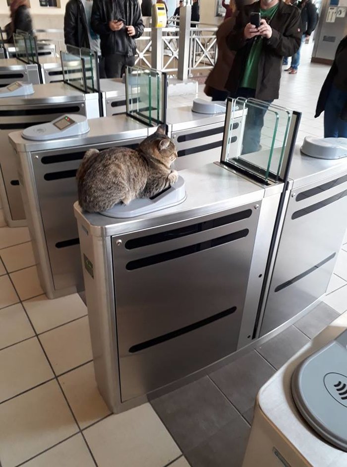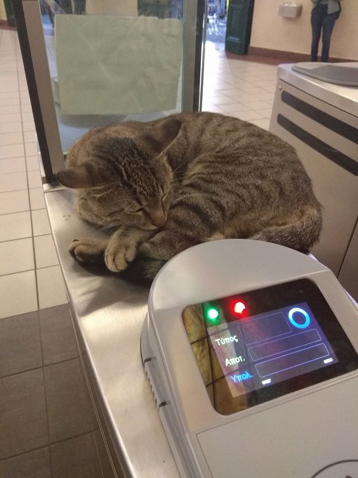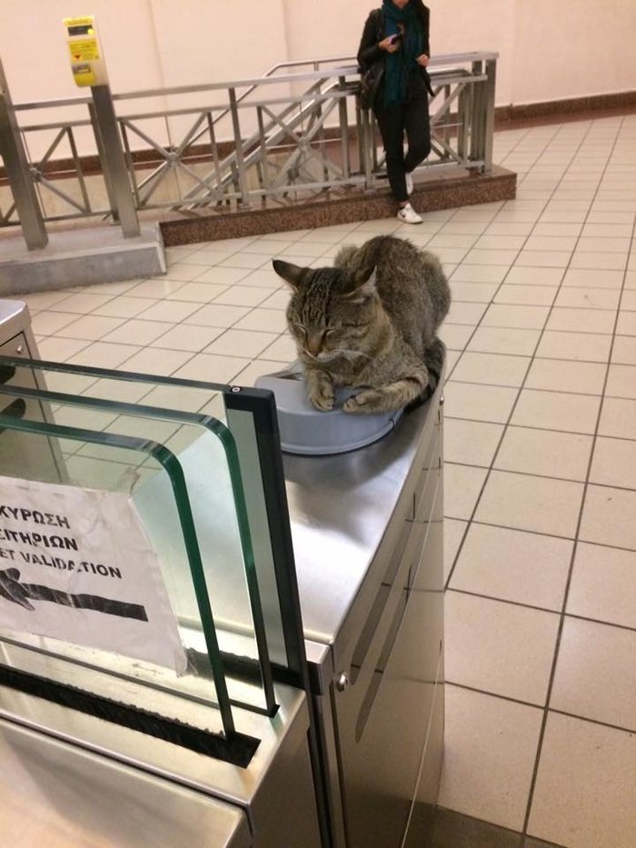 Ένα απόλυτα ήρεμο αιλουροειδές έκλεψε την παράσταση στο Μοναστηράκι. Ο τετράποδος «άρχοντας» καθόταν πάνω στις μπάρες του μετρό. Μετά γέμισε το Facebook με φώτο του.