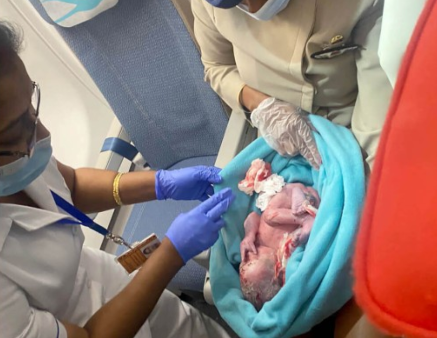 Οι υπάλληλοι παρατήρησαν ότι ο κάδος στην τουαλέτα του αεροπλάνου είχε πολλά ματωμένα χαρτιά, γεγονός που τους προβλημάτισε. Ψάχνοντας βαθύτερα στον κάδο ανακάλυψαν ένα νεογέννητο μωράκι το οποίο κάποιος είχε πετάξει. Το παιδάκι ήταν γυμνό, πεινούσε και μόλις κατάλαβε ανθρώπινη παρουσία δίπλα του άρχισε να κλαίει.