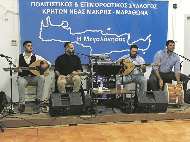Παρά τις αντίξοες καιρικές συνθήκες, η φθινοπωρινή μπόρα δεν φάνηκε να πτοεί καθόλου τους παρευρισκόμενους, οι οποίοι γέμισαν ασφυκτικά τη μεγάλη αίθουσα της κατασκήνωσης και χόρεψαν παραδοσιακούς κρητικούς χορούς, υπό τη μουσική των αδερφών Κοζωνάκη, Ευθύμη και Μιχάλη, του Βαγγέλη Μαμαλάκη στο λαούτο και του Λυκούργου Τζαρδή στα κρουστά.