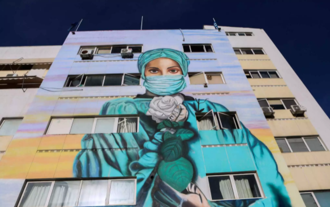 Ένας φόρος τιμής στους ήρωες των τελευταίων δυο ετών και όχι μόνο: τους γιατρούς και τους νοσηλευτές. Ένα γκράφιτι αφιερωμένο σε εκείνους, στο Τζάνειο νοσοκομείο.