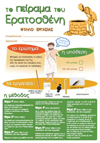 Είχε προηγηθεί τις προηγούμενες ημέρες σε όλα τα τμήματα της Β’ Γυμνασίου μια παρουσίαση για τη ζωή και το έργο του Ερατοσθένη καθώς και για το πείραμα με το οποίο υπολόγισε την ακτίνα της Γης.
