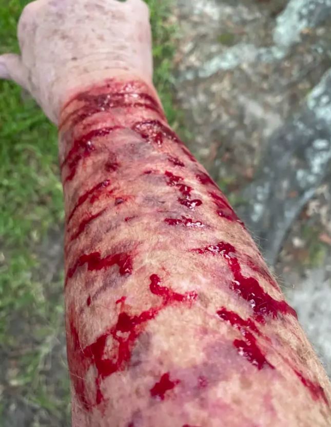 Σε δευτερόλεπτα, ολόκληρο το δεξί χέρι της γέμισε με αίματα, καθώς είχε βαθιά κοψίματα από τα νύχια του γερακιού.